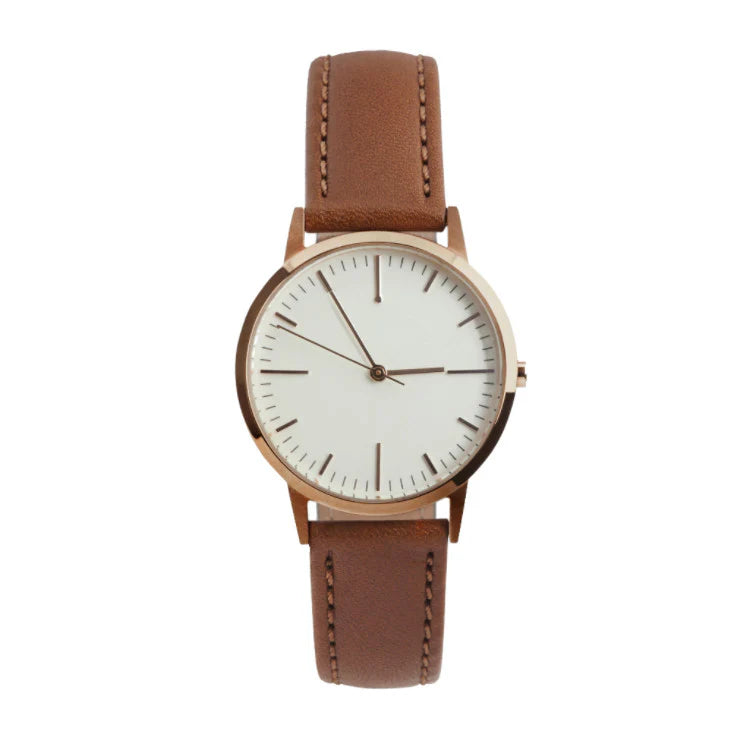 This Classic Minimalist Brown Leather Strap Watch combines refined simplicity with enduring style. Featuring a sleek, uncluttered dial and a supple brown leather band, it offers timeless elegance suitable for both formal and casual settings. The durable strap ensures comfortable wear throughout the day, while precise movement guarantees reliable timekeeping. An ideal accessory for those who appreciate understated sophistication and quality craftsmanship.