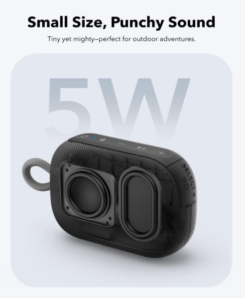 The Anker Soundcore Select 4 Go Bluetooth Speaker delivers robust sound with impressive clarity and deep bass in a compact, portable design. Its waterproof build ensures durability for outdoor use, while Bluetooth connectivity offers seamless wireless streaming from your devices. With a long-lasting battery, it supports extended listening sessions, making it ideal for on-the-go music enjoyment. Designed for reliability and superior audio performance, this speaker is perfect for users seeking high-quality sound in a versatile and durable package.