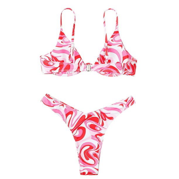 Bikini Sets Summer Womens Summer Fashion Bikini Set Two Piece Printinge Swimwear Beachwear Sexy Swimwear Pink