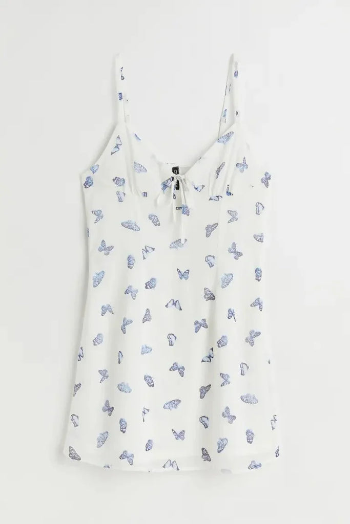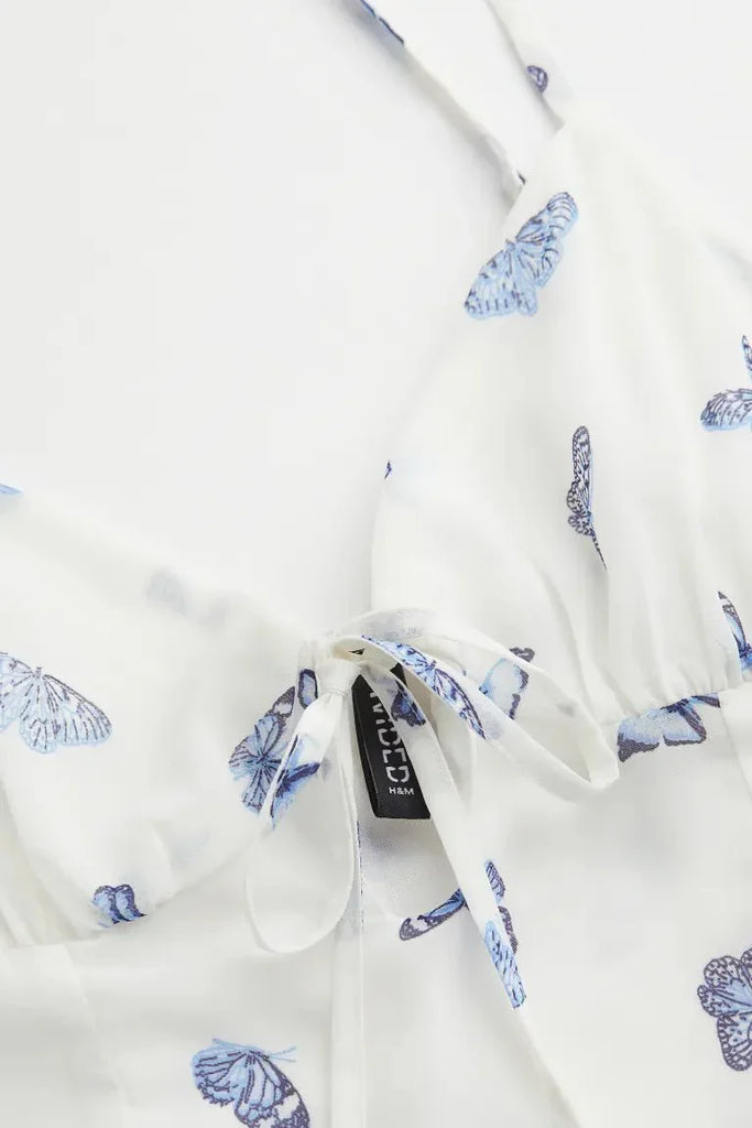 H&M Cut-Out-Detail Chiffon Dress White-Butterflies
