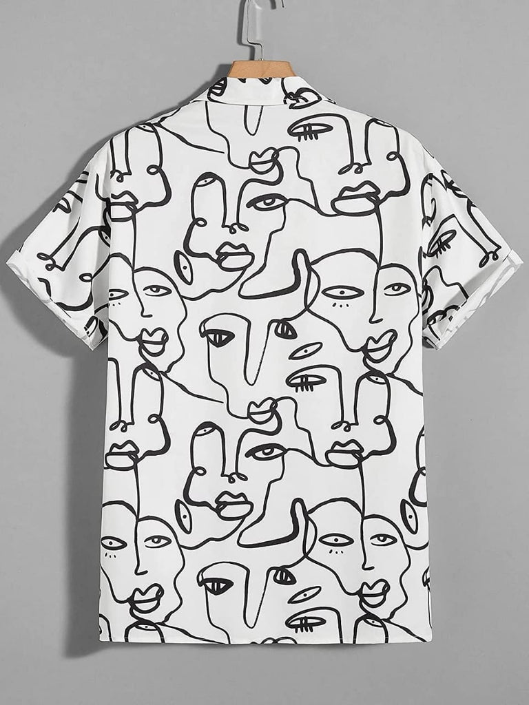 Women's Figure Print Short Sleeve Button Down Shirt Graphic Top Black White Shein